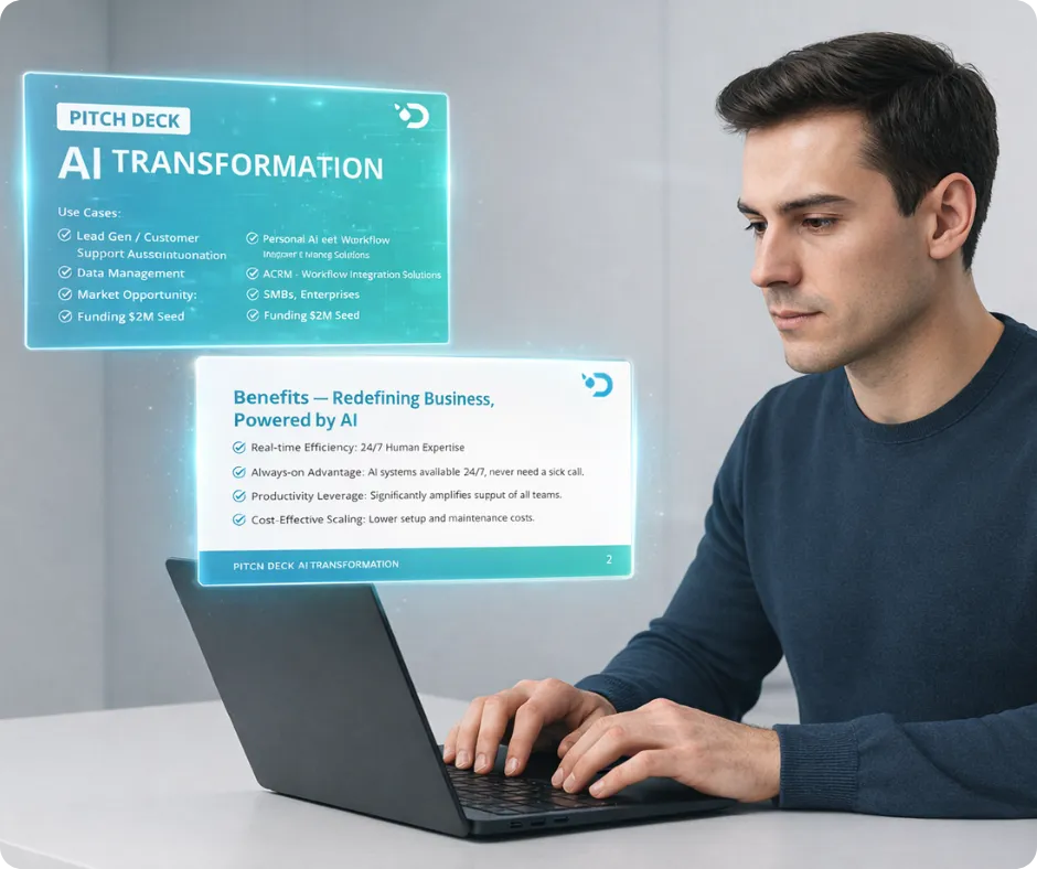 Beautiful, persuasive pitch decks that help your team sell with clarity and confidence.